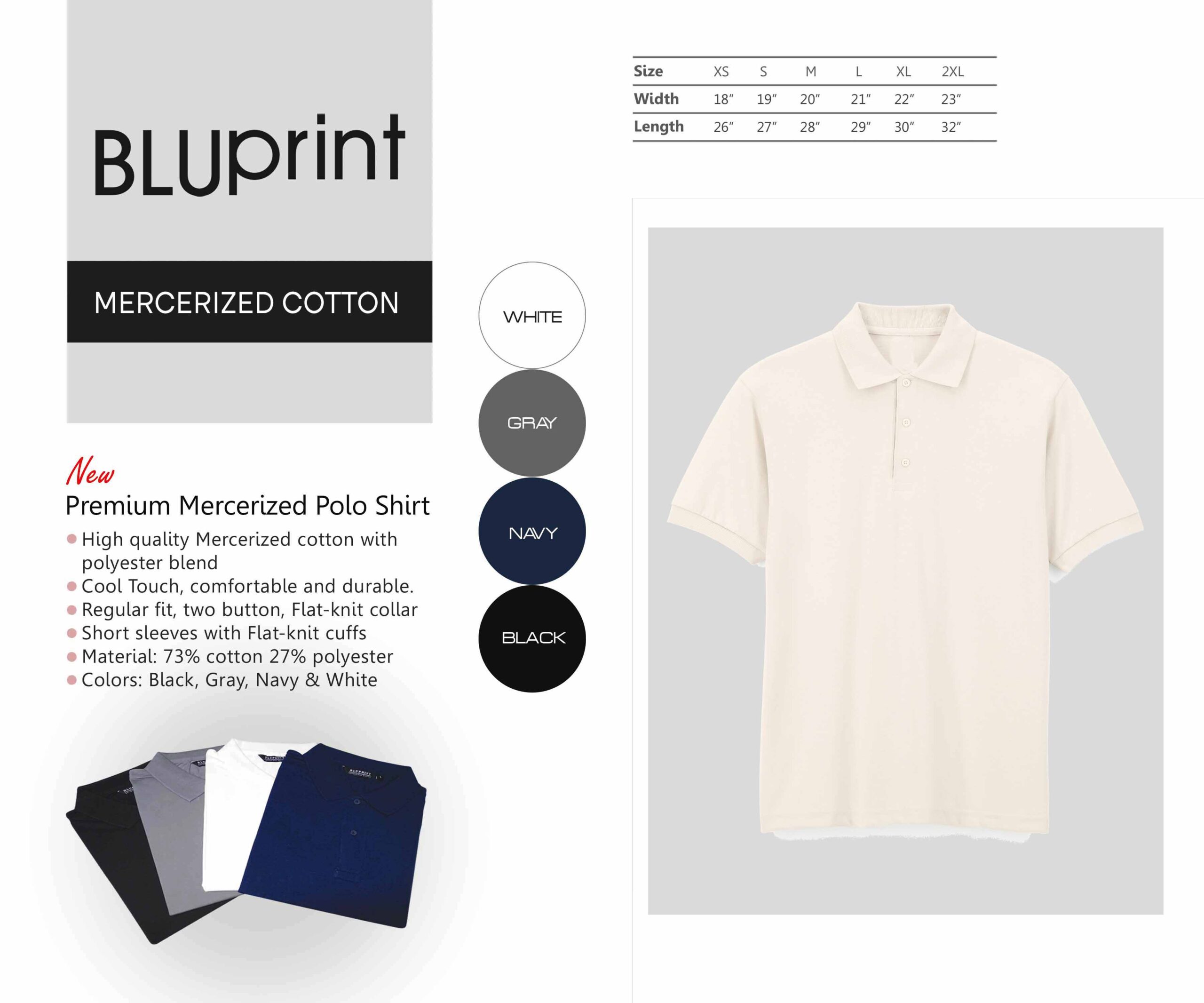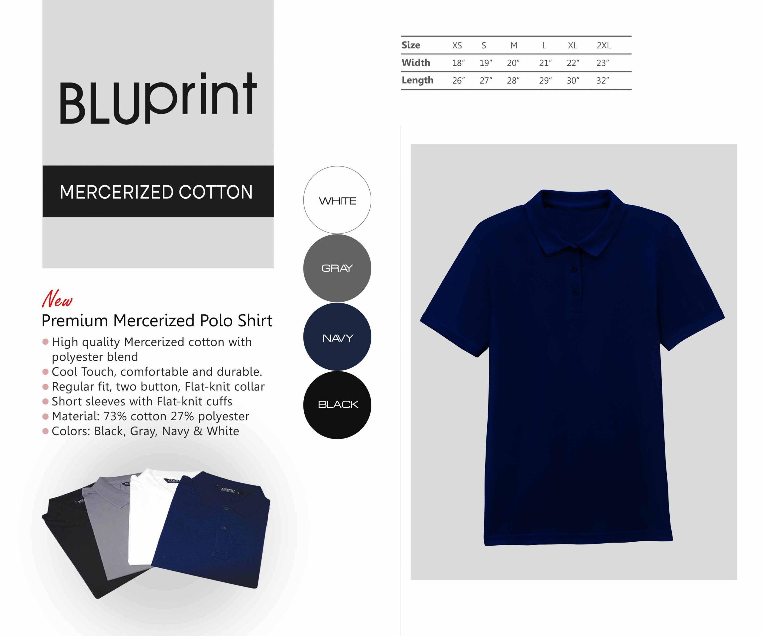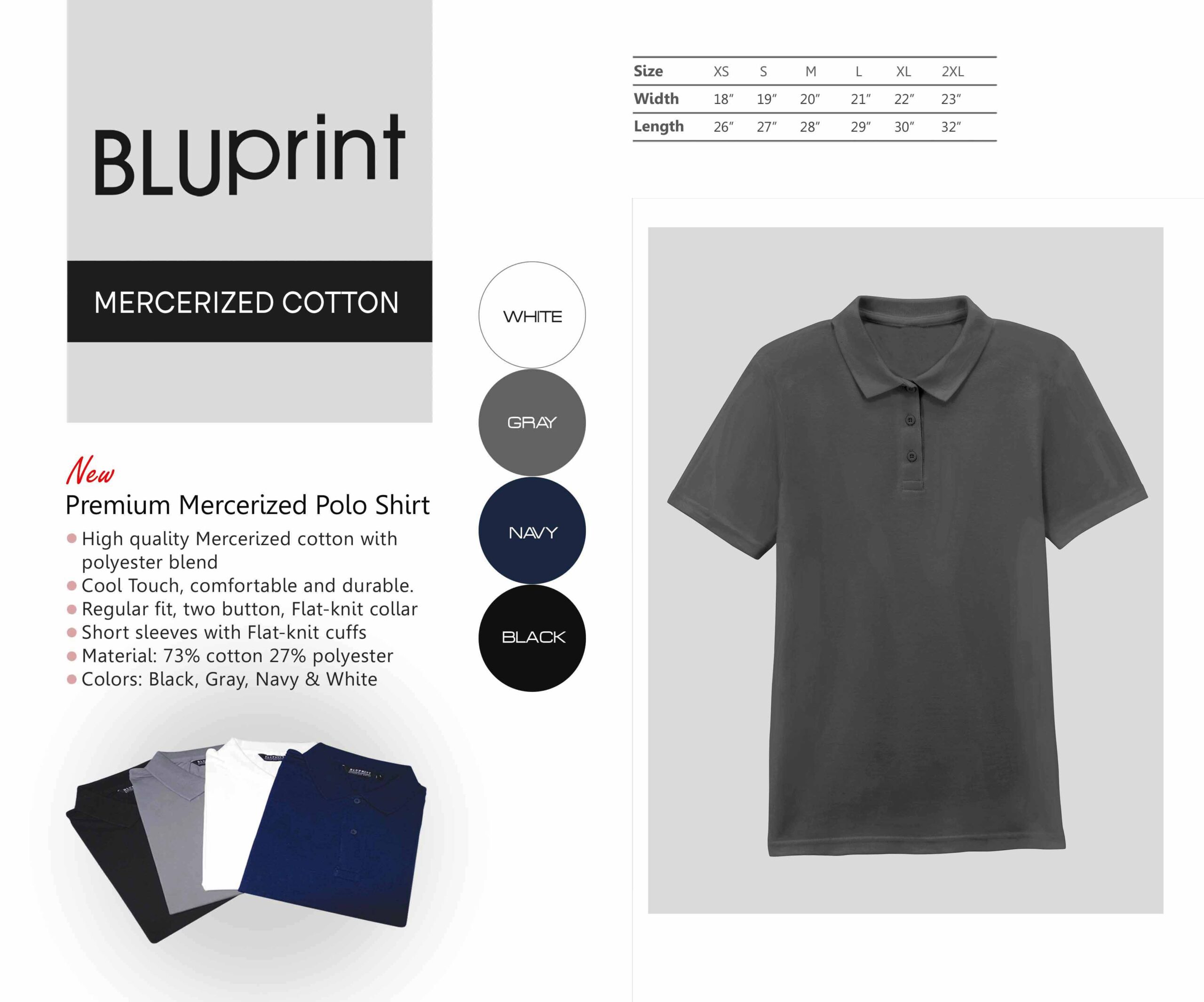• Colors: Black, Gray, Navy & White