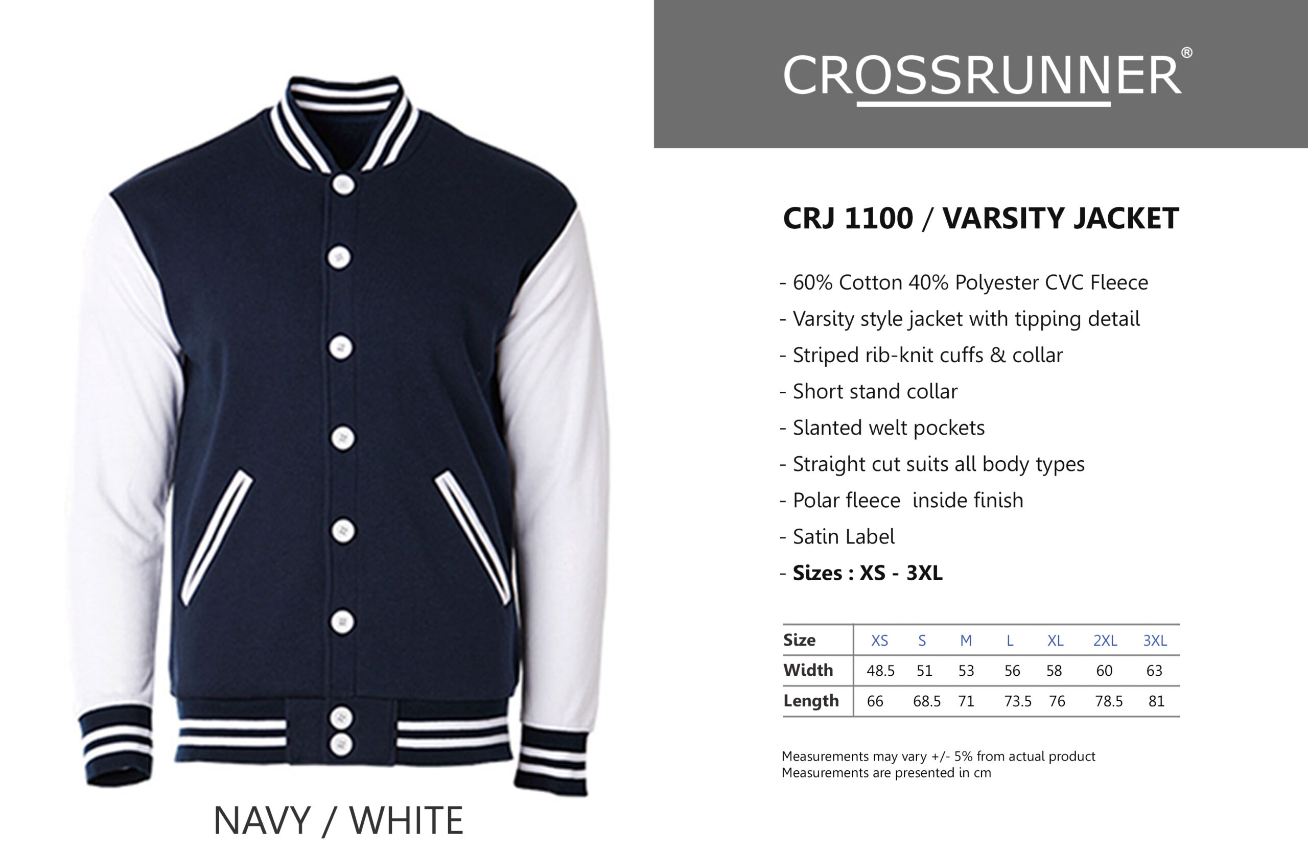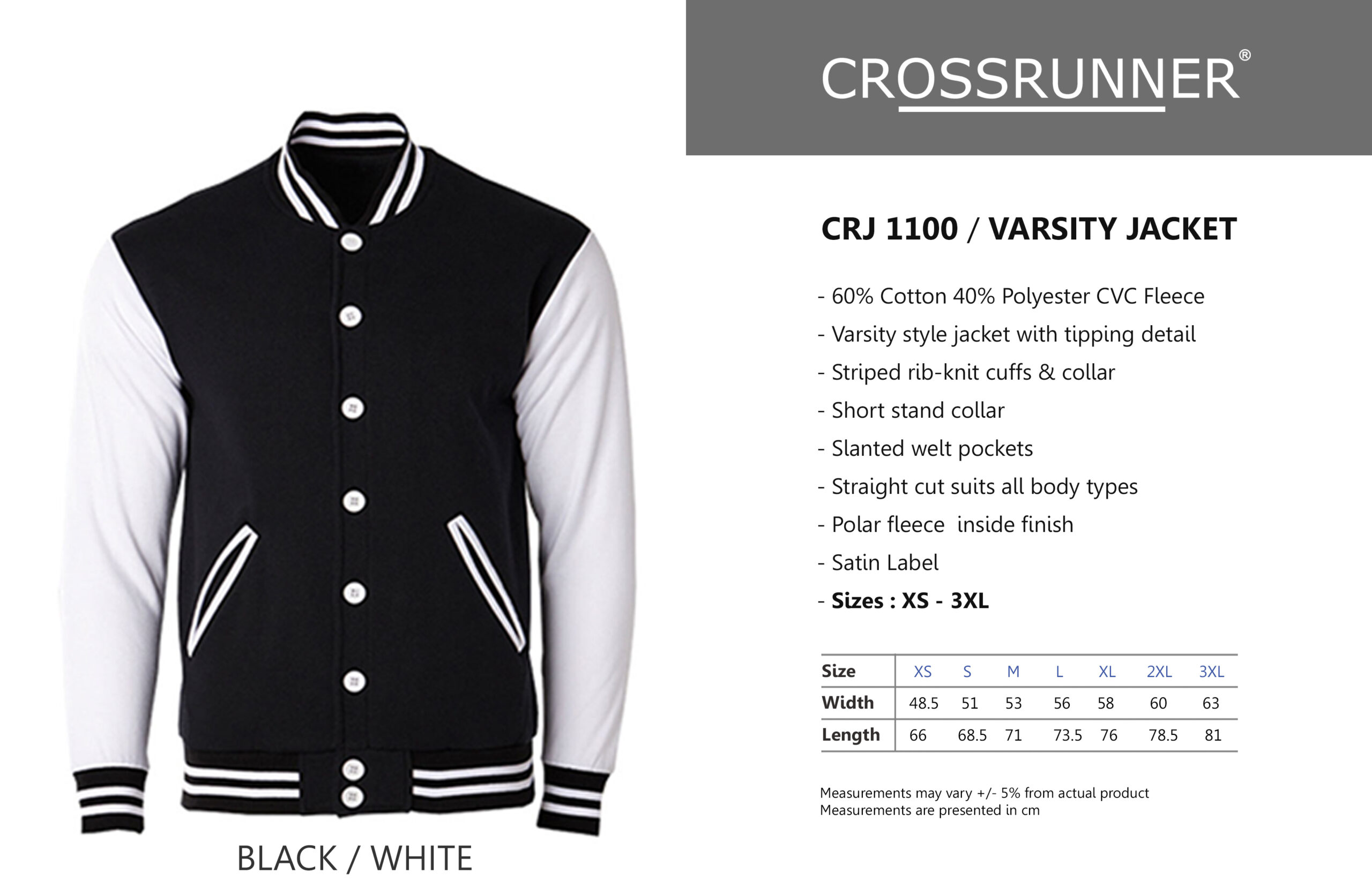 – Sizes: XS – 3XL
