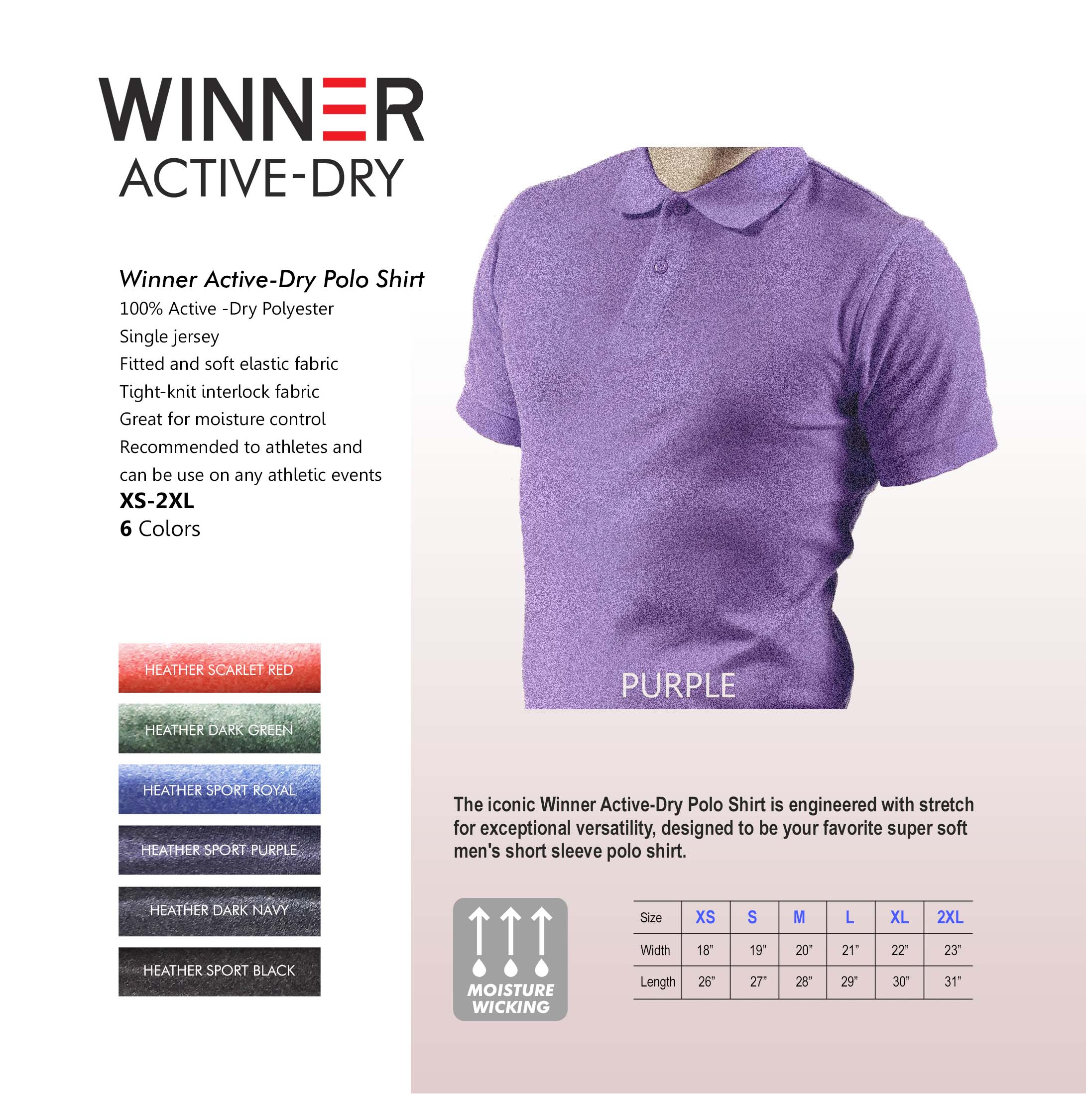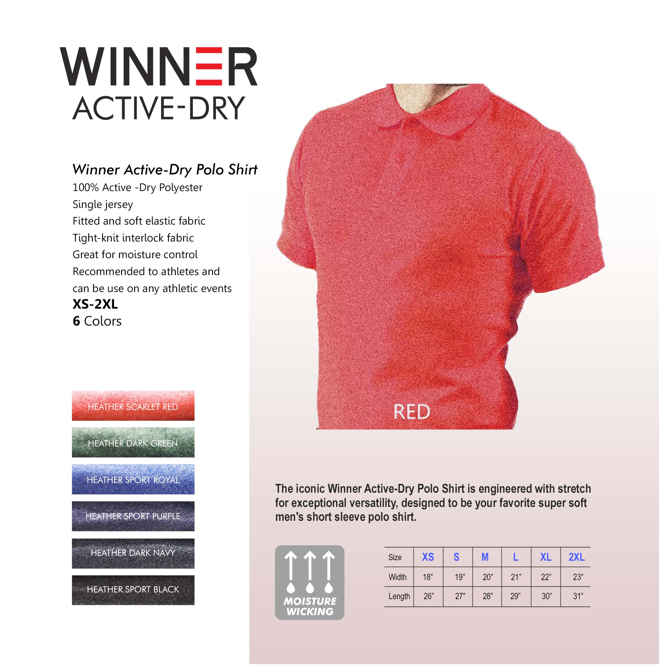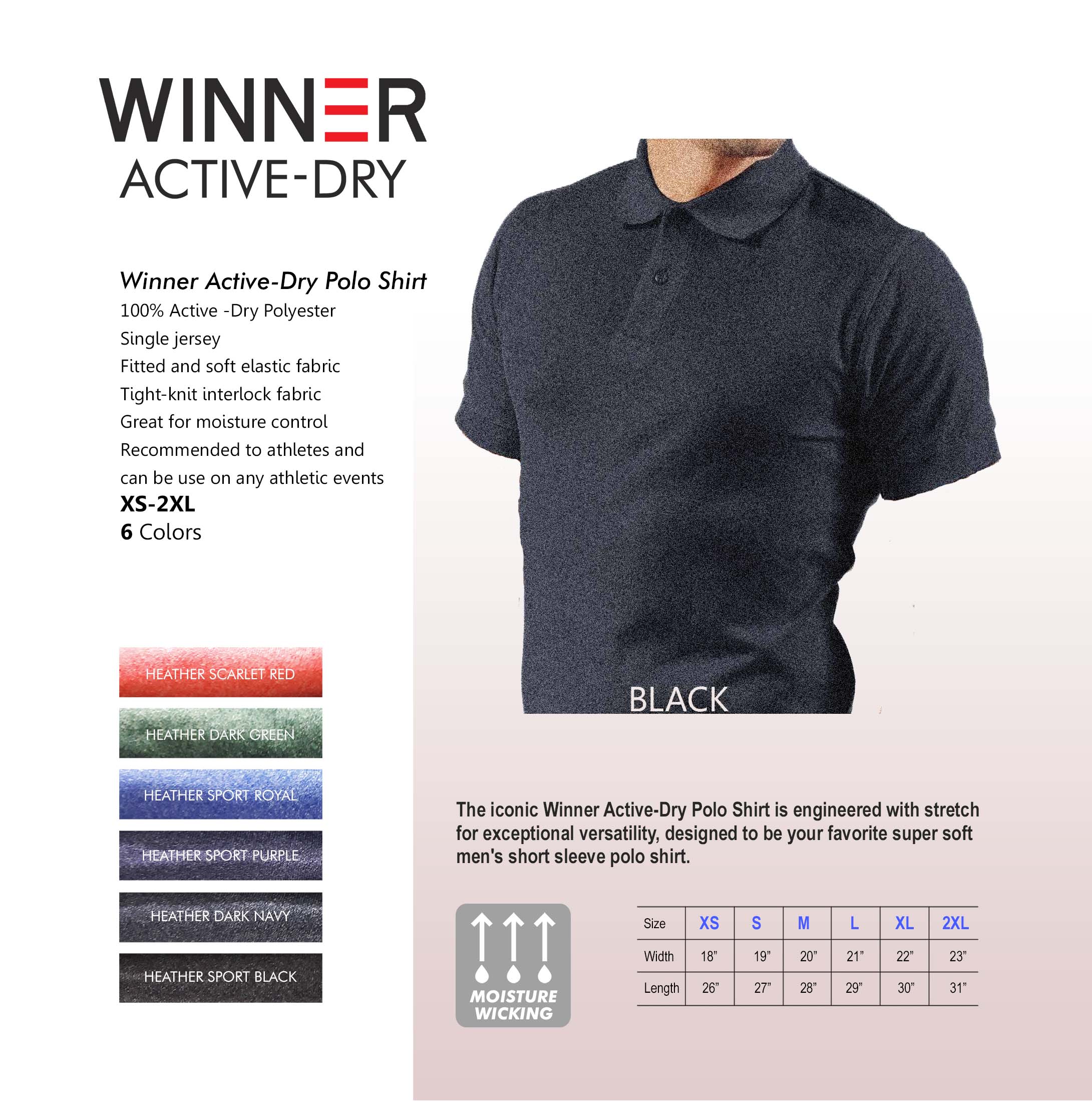 The iconic Winner Active-Dry Polo Shirt is engineered with stretch for exceptional versatility, designed to be your favorite super soft men’s short sleeve polo shirt.