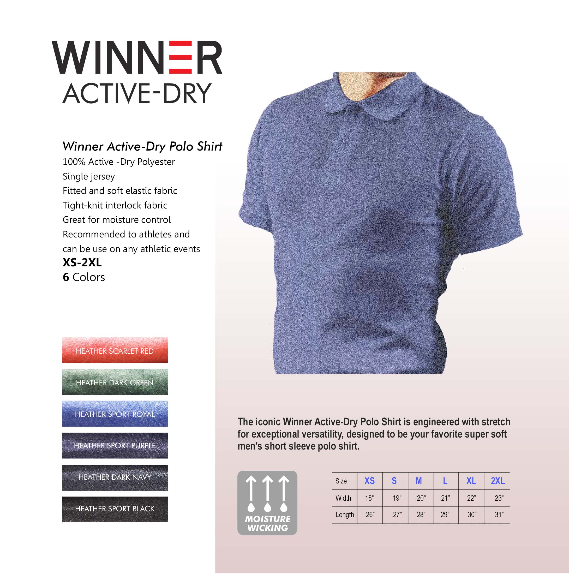 • 100% Active -Dry Polyester