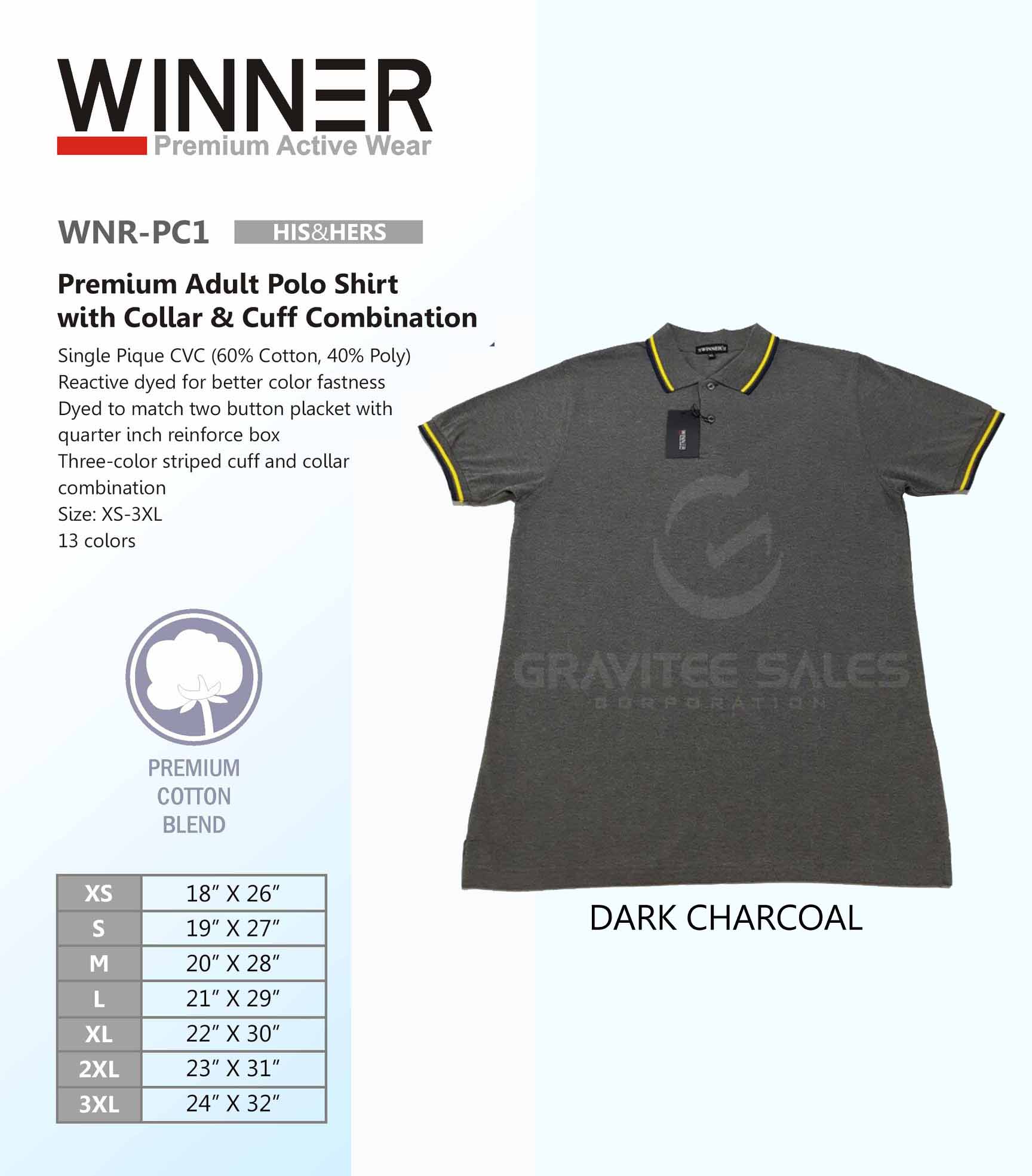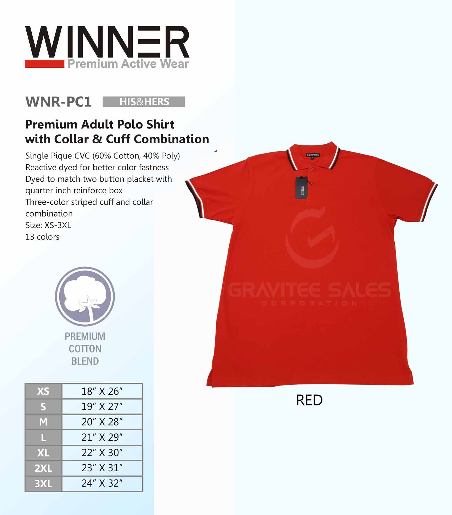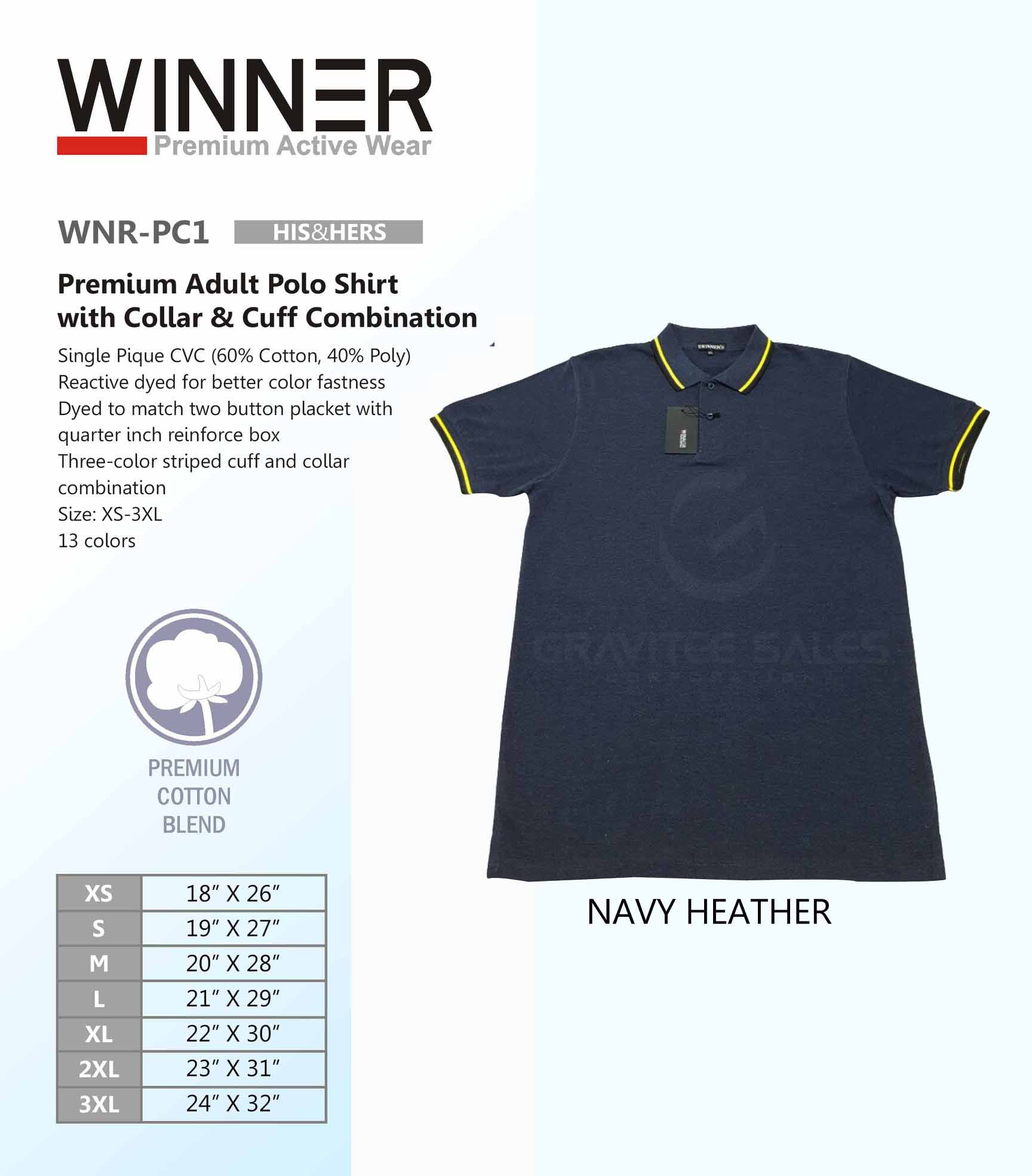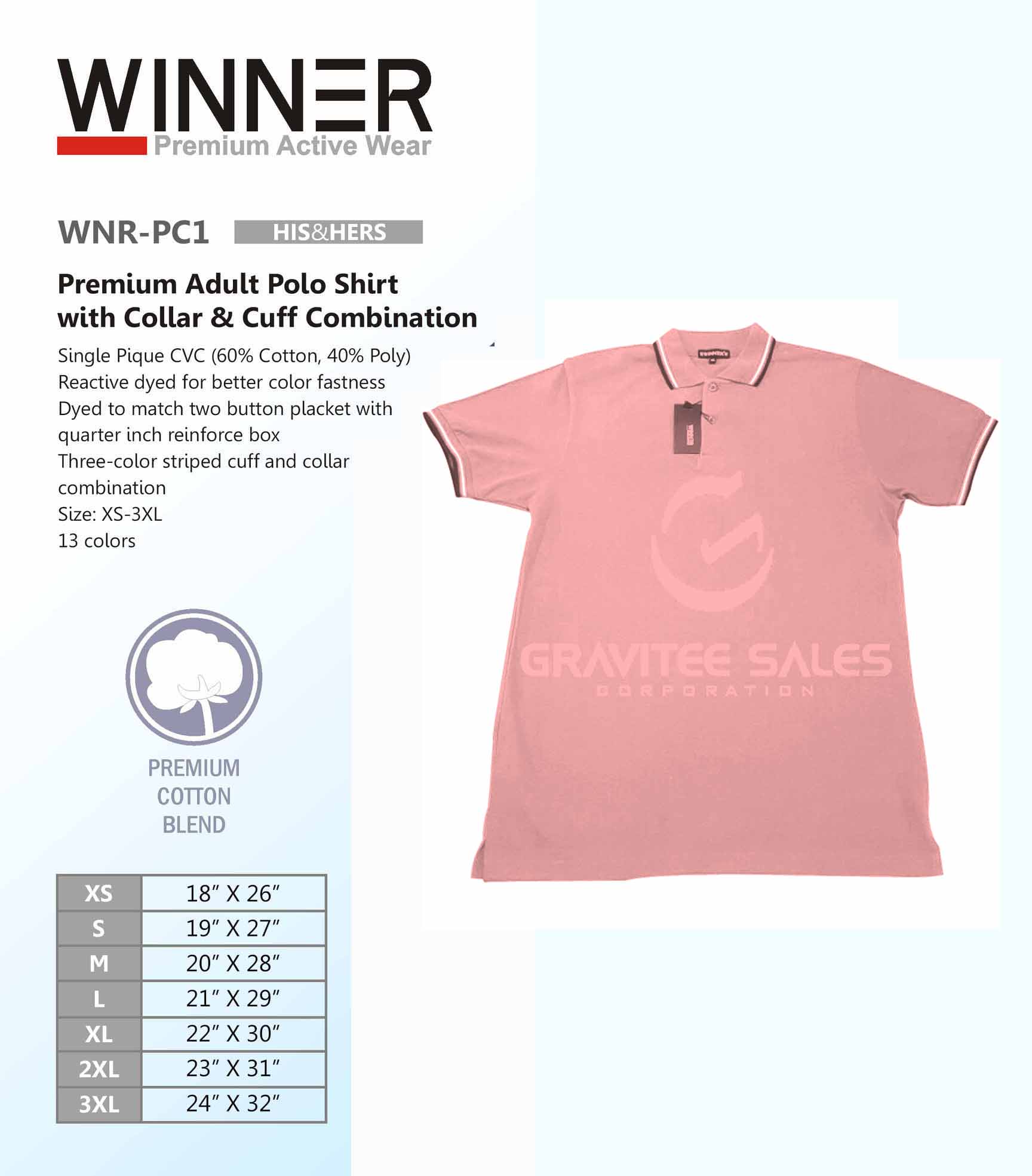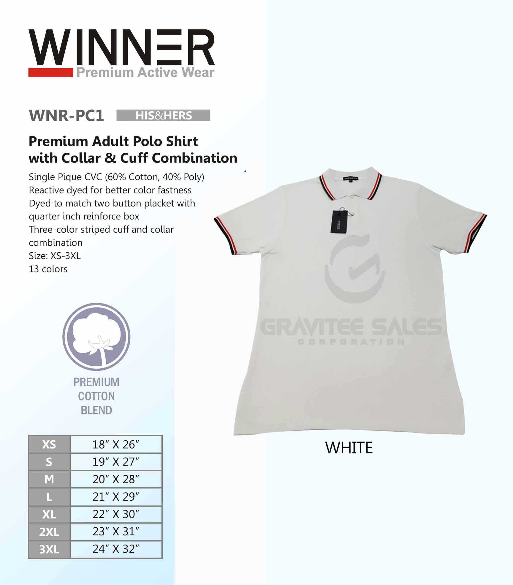 WINNER Premium Adult Polo Shirt with Collar & Cuff Combination