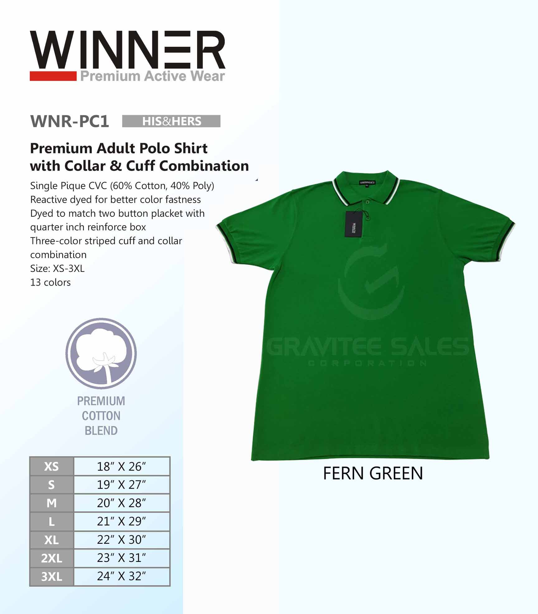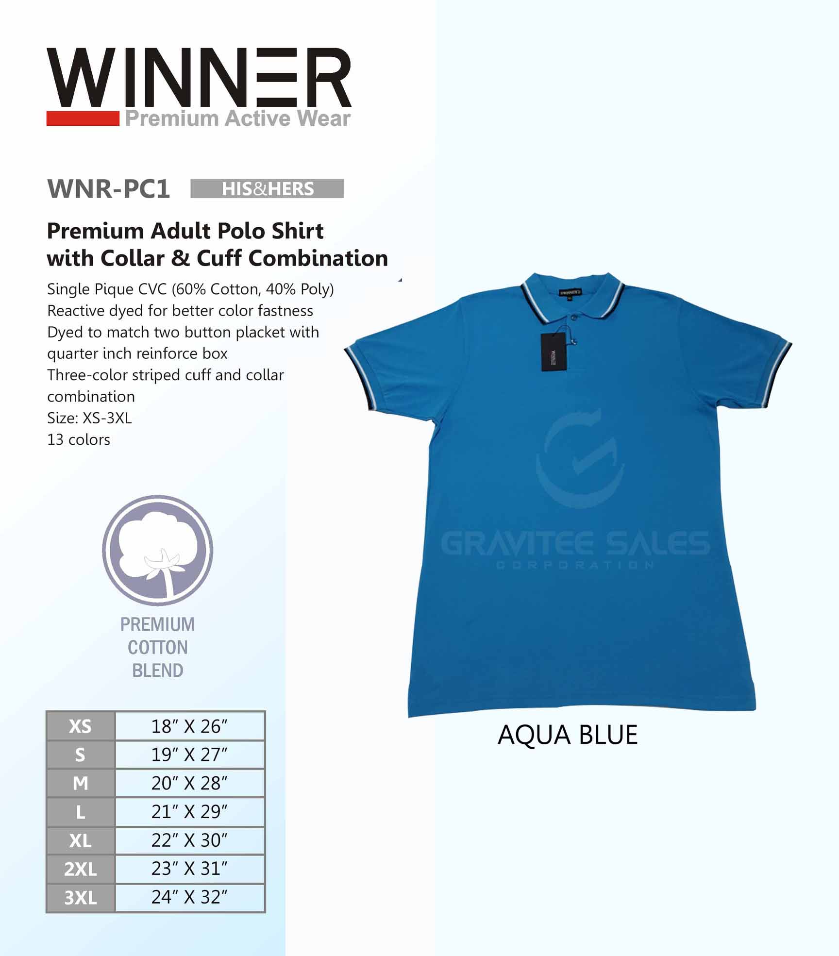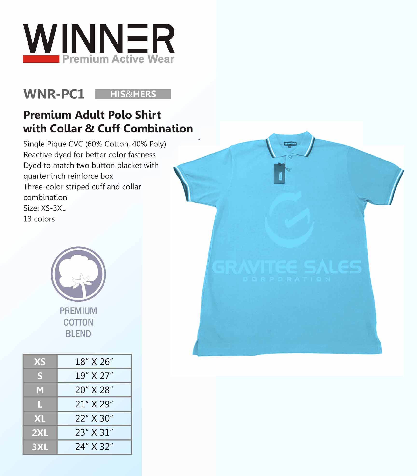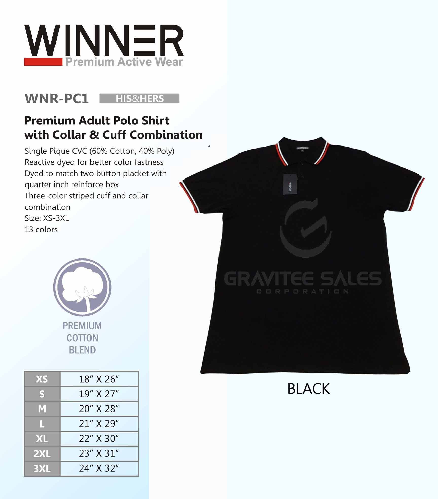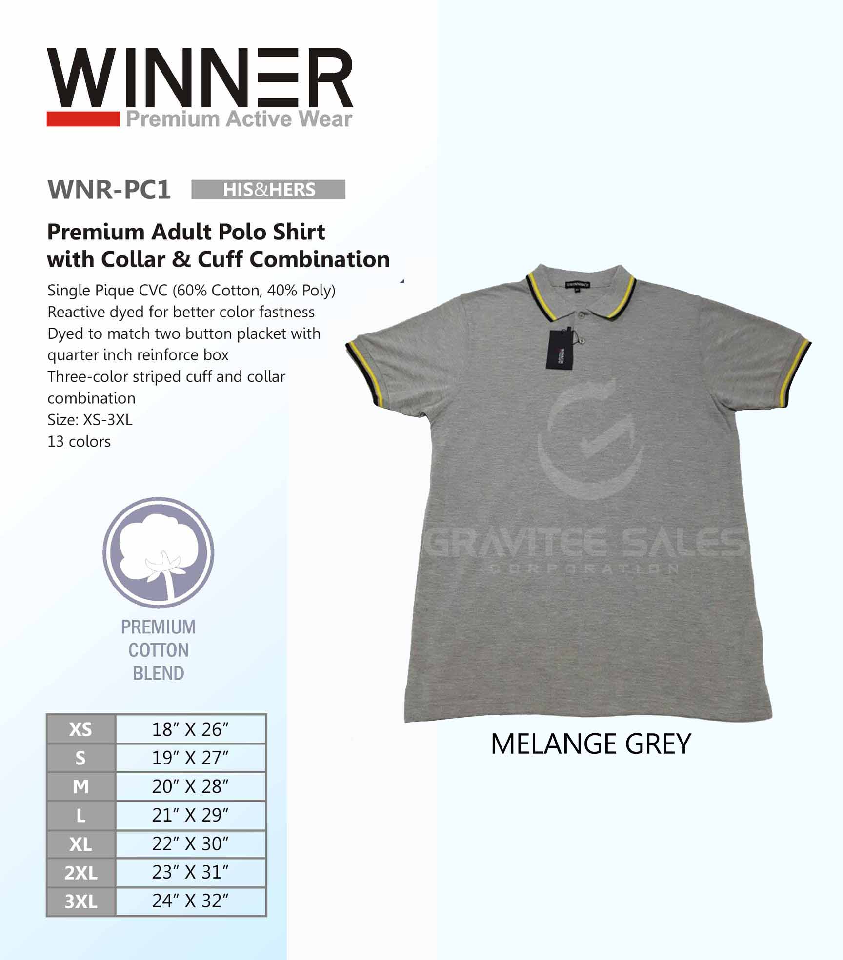 WINNER Premium Adult Polo Shirt with Collar & Cuff Combination